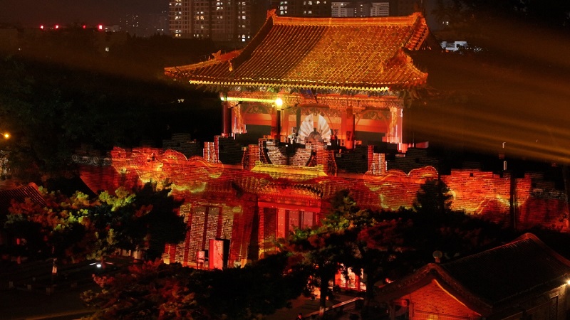 每日14時(shí)30分,活動(dòng)特邀來(lái)自肥城夢(mèng)幻桃花源的專(zhuān)業(yè)演職團隊帶來(lái)專(zhuān)場(chǎng)文藝演出。當夜幕降臨,18時(shí)30至21時(shí)(每半小時(shí)一場(chǎng)),岱廟北城墻將變身“巨型光影幕布”,上演燈光秀表演。光影流轉間,千年歷史與現代科技碰撞融合,讓游客在光影變幻中直觀(guān)感受泰山文化的厚重底蘊與魅力。