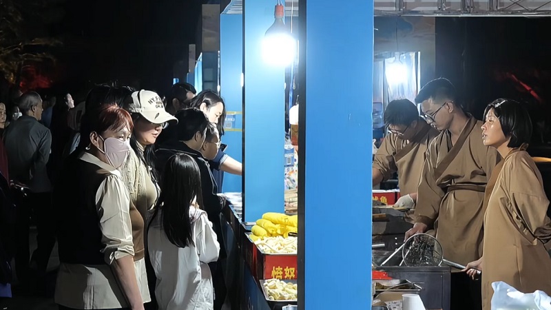 除了精彩的演藝活動(dòng),本次文化旅游節還在廣場(chǎng)北側區域開(kāi)設30余家非遺、文創(chuàng )展示攤位,設置泰好吃、泰有禮產(chǎn)品專(zhuān)區。游客不僅能近距離觀(guān)賞非遺產(chǎn)品的精妙,還能一站式品嘗“泰安味道”。